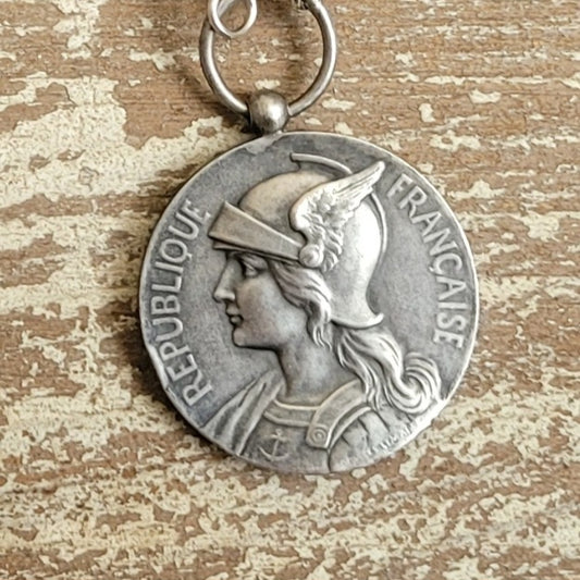 French WWI Navy Medal, vintage Boho Chic medallion necklace